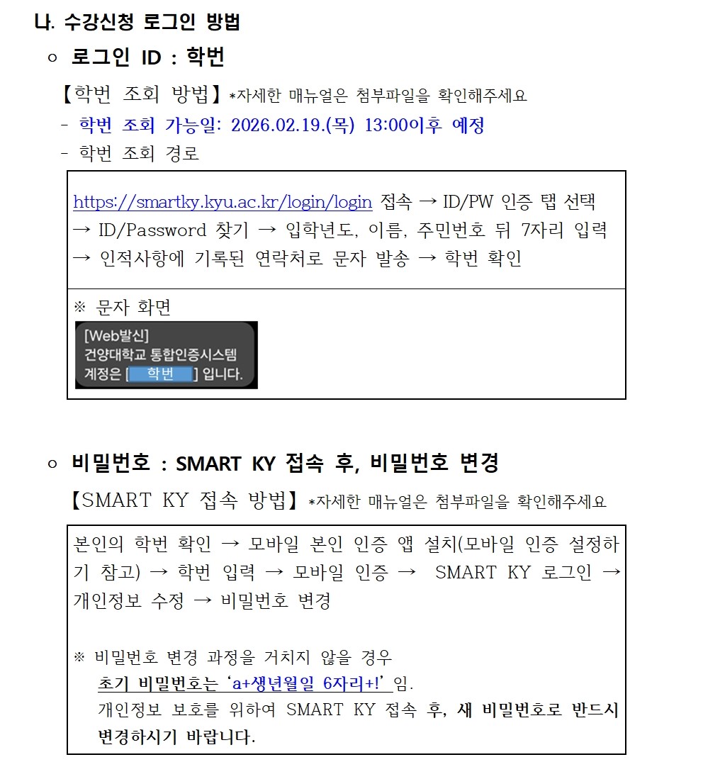 2. 2026학년도 신입생 수강신청 매뉴얼(학번조회 방법 포함).pdf