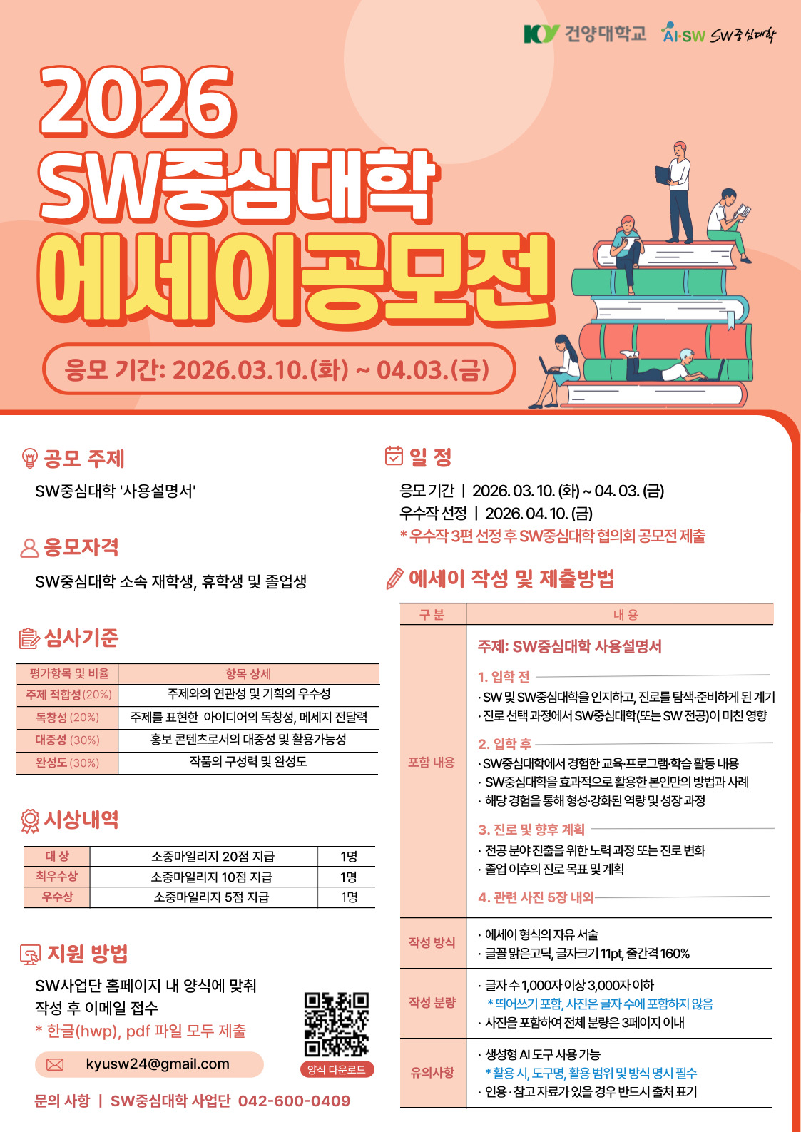 | 제목 | 2026 SW중심대학 에세이 공모전 | ||||